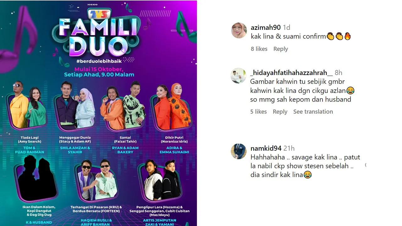 Diruangan komen, ramai yang bersetuju dengan apa yang dikongsikan, malah ada juga pihak yang tidak sabar untuk melihat duet Elly dan suami sekiranya mereka merupakan salah seorang daripada peserta program tersebut.