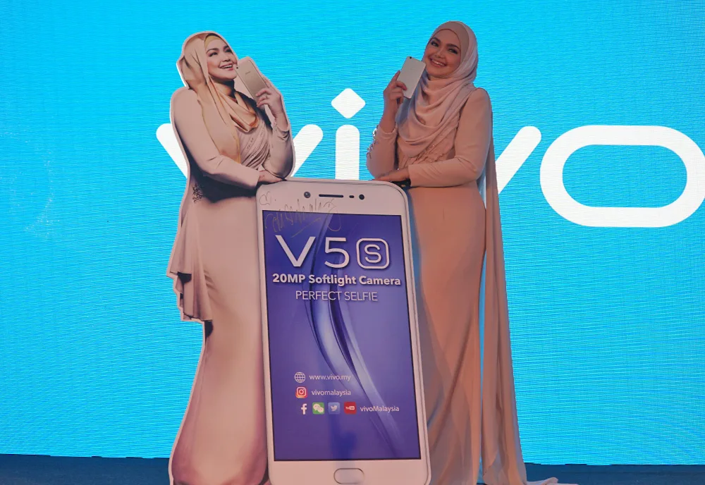 Penyanyi nombor satu Malaysia, Datuk Siti Nurhaliza sememangnya suka berselfie setiap kali ada masa terluang. Tidak hairan jika Siti dipilih sebagai duta pertama bagi model telefon pintar, Vivo V5. Tahun ini, vivo telah mencapai rekod jualan yang besar pada suku tahun pertama sejak melantik Siti sebagai duta vivo. Sebagai artis paling terkenal di Malaysia, Dato Siti Nurhaliza telah membantu untuk memberikan impak yang besar untuk jualan produk vivo di Malaysia.