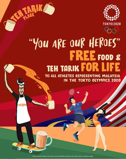 Bukan dalam bentuk wang tunai, tetapi sebanyak 30 olimpian di Tokyo ini bakal mendapat ganjaran makan percuma seumur hidup. Biar betul? Ya, ini lah yang dijanjikan oleh sebuah restoran terkemuka, Teh Tarik Place kepada para kontinjen Malaysia. Teh Tarik Place mengumumkan untuk memberikan ganjaran seumur hidup secara percuma berupa teh tarik dan produk makanan kepada semua wira negara ini.