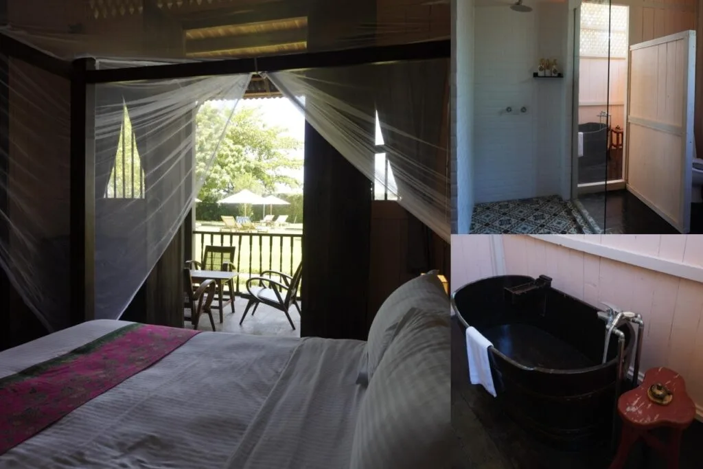 Pada waktu malam, rasanya memang sangat sejuk tetapi pada waktu siang agak terasa bahang panasnya. Tetapi kamu jangan risau kerana walaupun rumahnya klasik, pihak resort ada pasangkan penghawa dingin.