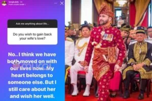 Menjawab pertanyaan yang diajukan itu, Tengku Salehuddin dengan telusnya meluahkan bahawa diri baginda telah ‘moved on’ dan kini hatinya sudah dimiliki orang lain.