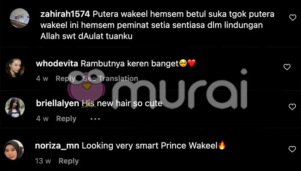 Diruangan komen kelihatan ramai yang memuji ketampanan Putera Wakeel malah rata-rata netizen teruja melihat penampilan Putera Wakeel begitu comel dengan rambut panjangnya.