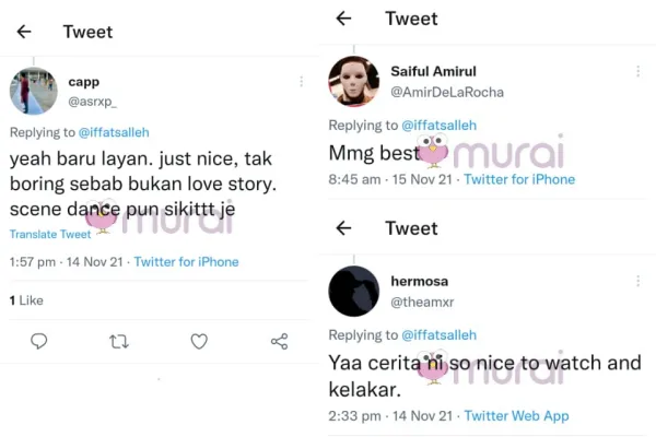 “Ya cerita ni sangat menarik untuk ditonton dan kelakar” Komen warganet lagi