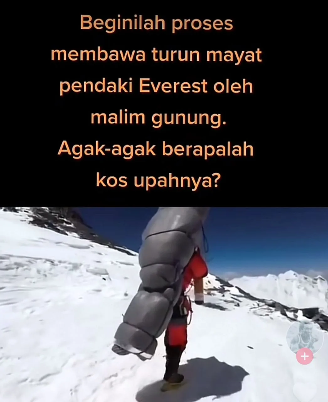 Baru-baru ini, tular sebuah video seorang malim gunung yang sedang mendukung mayat pendaki Gunung Everest.