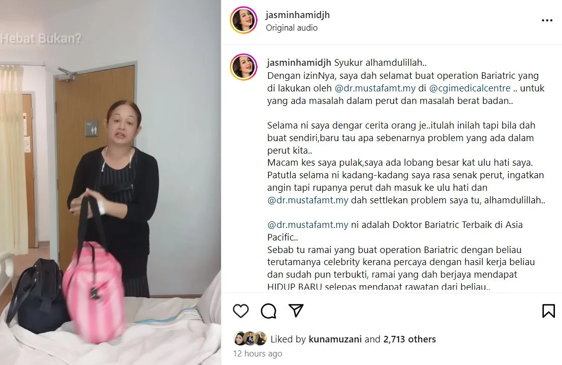Terbaru, satu perkongsian di Instagram milik pelakon Jasmin Hamid mendedahkan bahawa dia baru sahaja selesai melakukan pembedahan bariatrik.