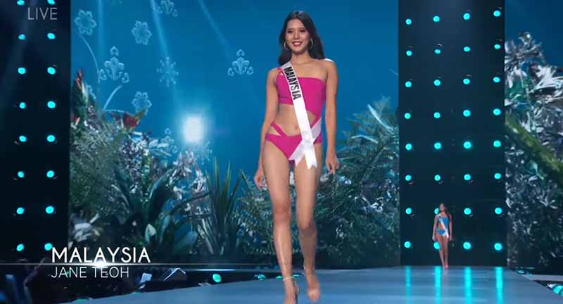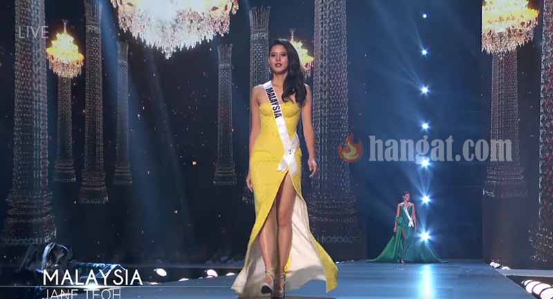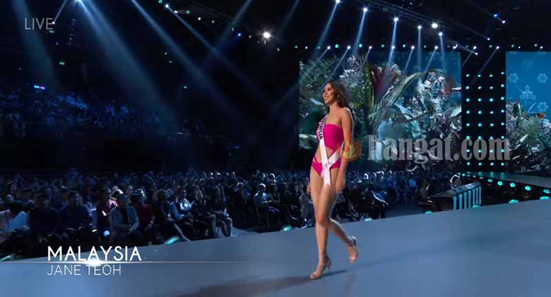 Perwakilan Malaysia di pertandingan Miss Universe 2018, Jane Teoh tampil memukau dalam babak preliminary competition yang berlangsung di Bangkok, Thailand, pada Khamis (13/12). Penampilan wanita berusia 20 tahun ini tampil memukau jika dibandingkan dengan peserta-peserta yang lain,.