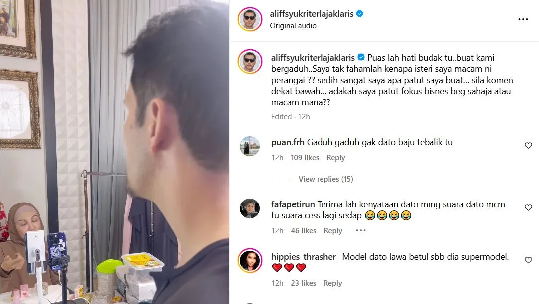 Video mengenai pandangan Shida telah menjadi perhatian Aliff dan dalam satu video yang dimuat naik Aliff di Instagram miliknya,dia meluarkan rasa sedih apabila isterinya memberikan pandangan bahawa suara Alif tidak sedap.