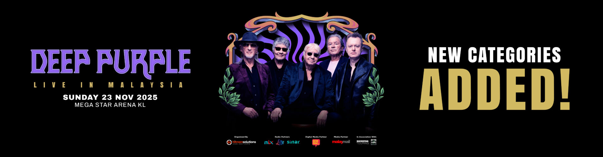 Nampaknya aura legenda Deep Purple masih belum pudar! Tiket konsert Deep Purple Live in Malaysia yang bakal berlangsung tidak lama lagi telah laku keras, sehingga pihak penganjur terpaksa menambah tempat duduk baharu bagi menampung permintaan luar biasa daripada para peminat.