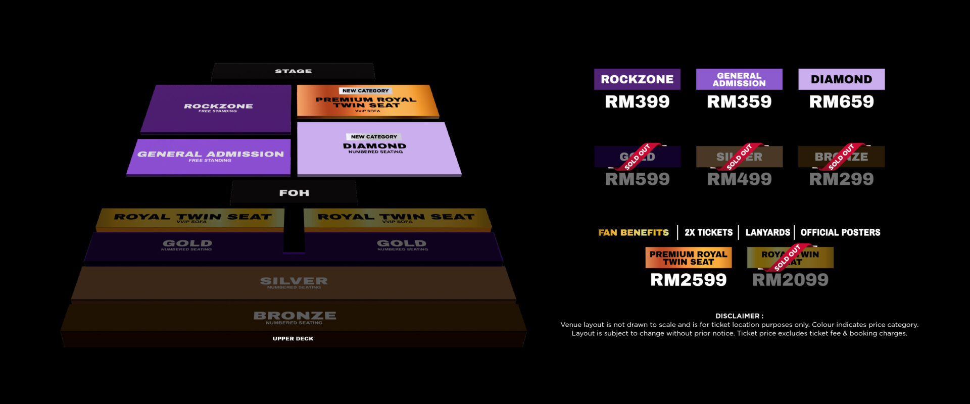 Menurut kenyataan rasmi, kategori tiket tempat duduk yang sebelum ini sudah habis dijual kini telah diperluas, dan tiket tambahan rasmi mula dijual hari ini. Ini memberi peluang kepada peminat yang terlepas pembelian awal untuk turut sama menyaksikan persembahan istimewa ini.