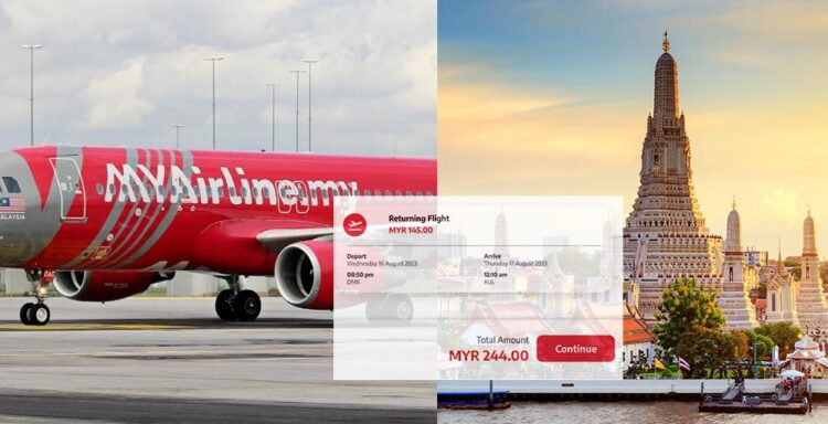 Tinjauan kami ketika membuat tempatan di laman sesawang MYAirline, ternyata tiket penerbangan pergi balik dari Kuala Lumpur ke Bangkok hanya RM244 sahaja termasuk cukai.