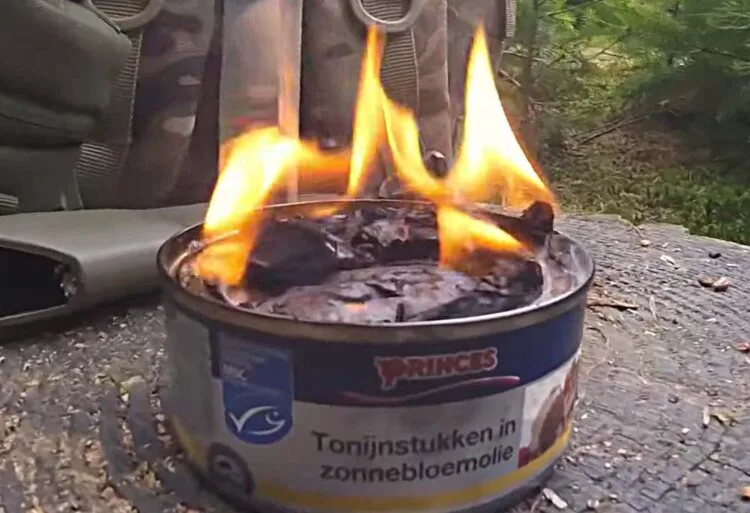 Hanya meletakkan beberapa helaian kertas tandas di atas permukaan tin tuna. Kemudian biarkan kertas itu menyerap minyak dan cahaya. Anda boleh membiarkan api itu untuk memanaskan diri, merebus lebih banyak makanan atau memanggang makanan yang lain. Semakin banyak minyak dalam tin, maka semakin lama api itu akan menyala.