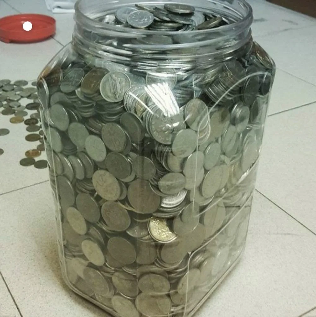 Tunggu sehingga penuh dan anda pasti tersenyum dengan jumlah yang banyak yang mampu disimpan dari duit syiling tersebut. Mudah bukan? Duit yang ditabung juga boleh disimpan didalam akaun khas atau mungkin boleh dibelanjakan untuk barang keperluan yang perlu dibeli nanti. Atau juga boleh dijadikan sebagai modal percutian.