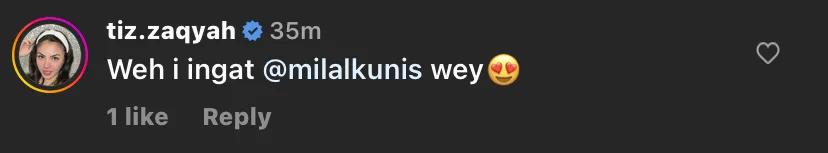 “Weh i ingatkan @milalkunis wey”-tulis Tiz Zaqyah