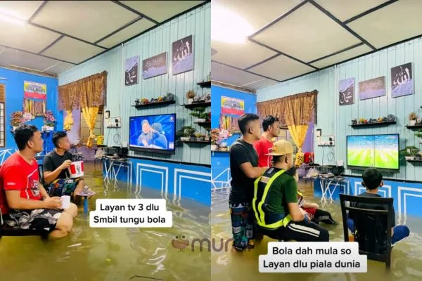 Tonton TV Dalam Keadaan Banjir, Netizen Risau Kena Renjatan Elektrik
