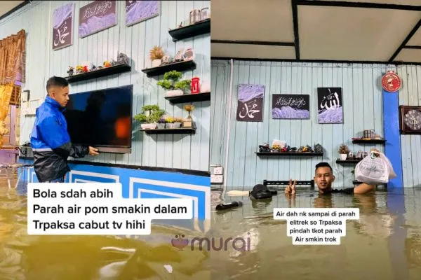 Namun lain pula bagi keluarga yang satu ini, bila mana pengguna akaun TikTok yang dikenali dengan nama @OneFlooring berkongsi video gambar keluarganya yang kelihatan tenang hadapi banjir. Malah dalam gambar yang dikongsikan, mereka sempat menonton televisyen dalam keadaan rumah dinaiki air.