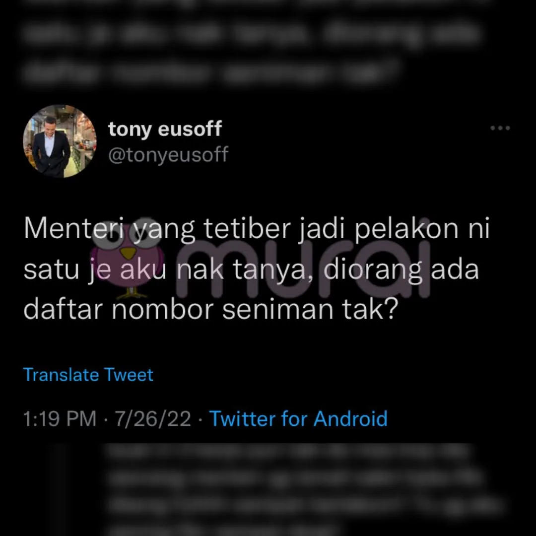 “Menteri yang tetiber jadi pelakon ni satu je aku nak tanya, diorang ada daftar nombor seniman tak.?”-Ciapan Tony Eusoff di Twitter