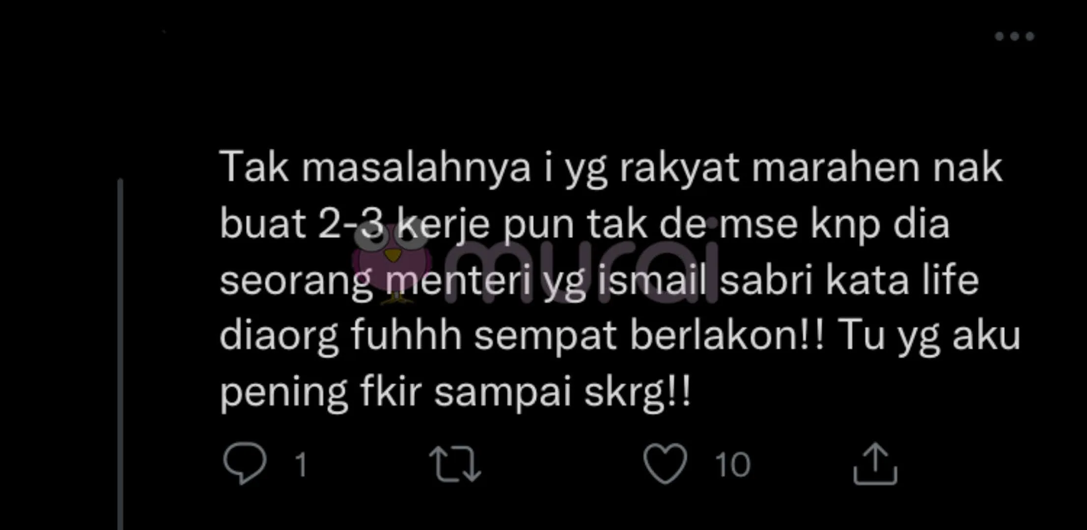 “Tak masalahnya i yang rakyat marahen nak buat 2-3 kerja pun tak ada masa kenapa dia seorang menteri yang Ismail Sabri kata life diorang fuhh sempat berlakon!! Tu yang pening fikir sampai sekarang.”