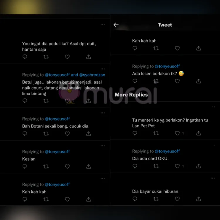 Tinjauan Murai MY di ruangan balas ciapan Tony Eusoff mendapati rata-rata netizen turut memberikan reaksi mereka walaupun tidak menyebut nama siapakah menteri yang dimaksudkan.