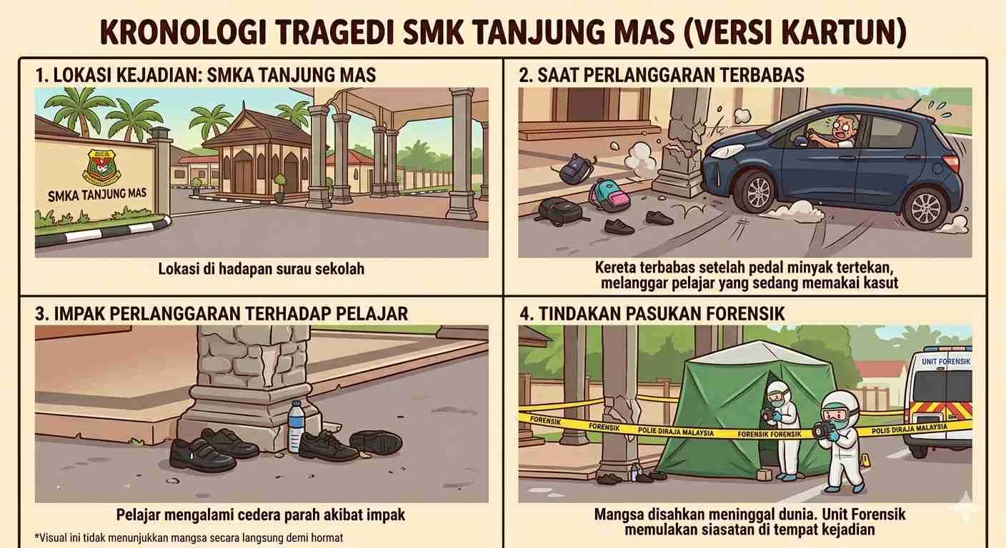 Baru-baru ini tular satu kejadian yang mengejutkan ramai apabila insiden membabitkan pelajar dan sebuah kenderaan berlaku di kawasan Sekolah Menengah Kebangsaan (SMK) Tanjung Mas, Kota Bharu, di hadapan surau sekolah sekitar jam 1.50 tengah hari, semalam.