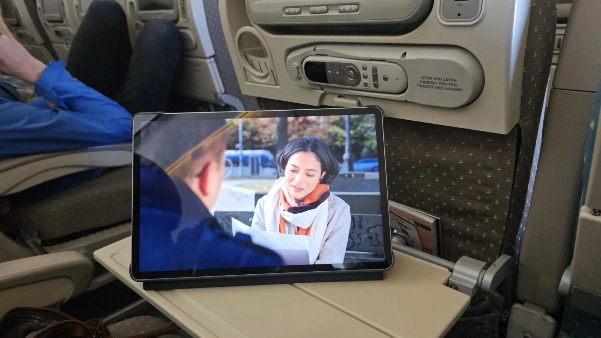 Naik kapal terbang 12 jam memang boleh buat sesiapa pun bosan. Tapi sebab kami dah siap muat turun beberapa filem kegemaran awal-awal, memang tak terasa panjang sangat pun. Skrin tablet ni memang sedap mata tengok, 90Hz refresh rate, warna vivid, dan ada penuras cahaya biru untuk elak mata cepat letih.