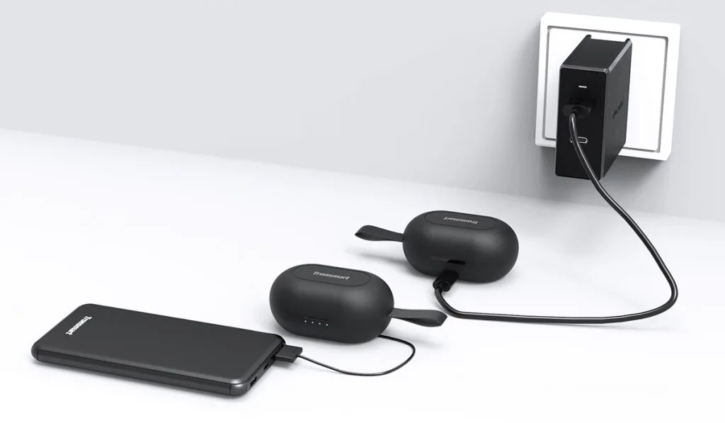 Terdapat dua jenis sistem pengecasan yang anda boleh memilih. Anda boleh mengecas Spunky Beat anda menggunakan kabel USB-A atau kabel USB-C yang termasuk dalam pakej earphone Tronsmart.