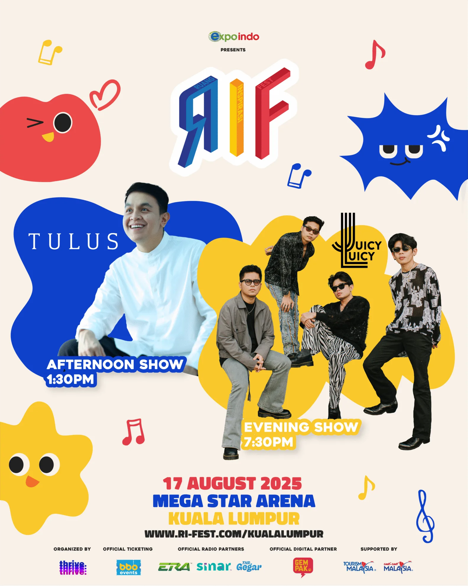 Dianjurkan oleh Expoindo bersama Thrive, RIF membawa konsep segar yang menggabungkan persembahan muzik dengan elemen inspirasi serta perkongsian kisah di sebalik lagu-lagu popular.