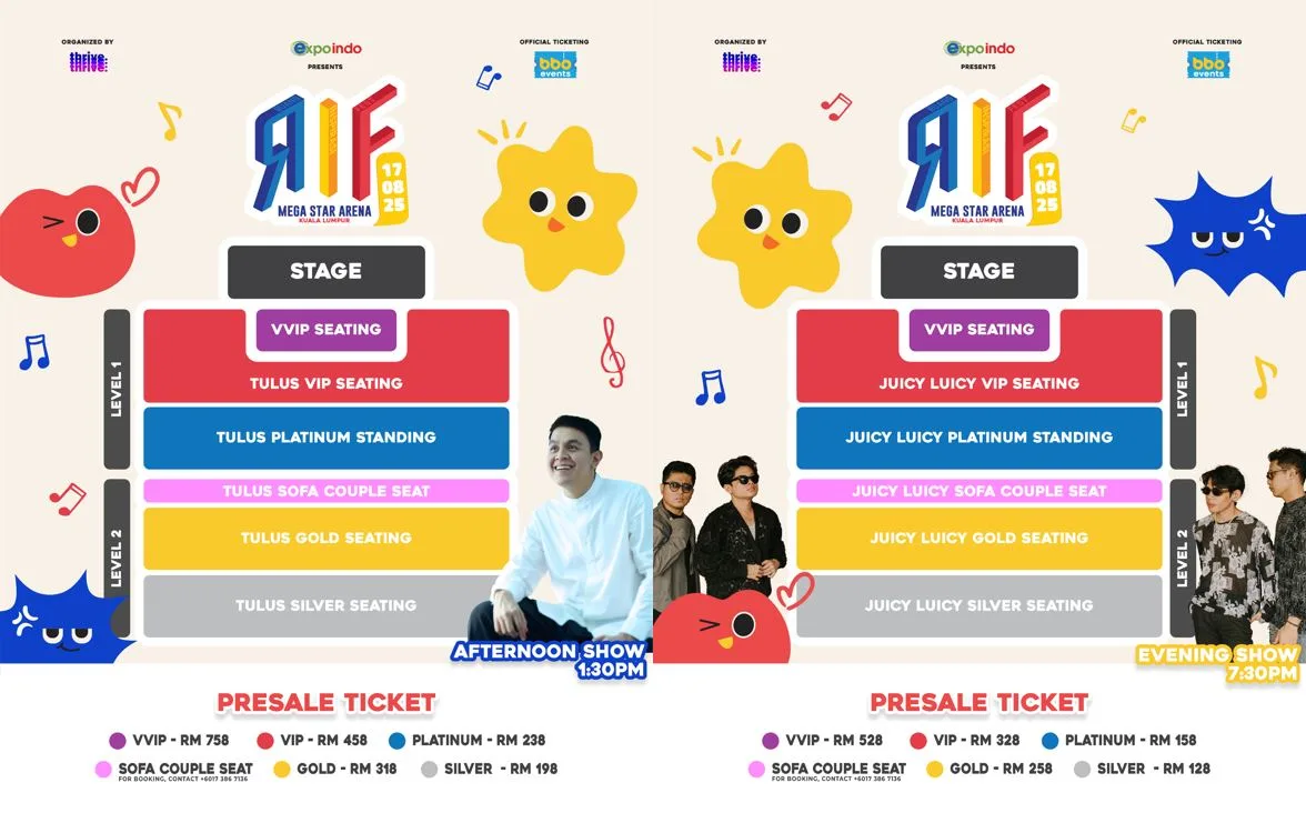Tiket telah mula dijual sejak 17 Julai menerusi aplikasi BBO EVENTS atau laman rasmi www.ri-fest.com/kualalumpur.
