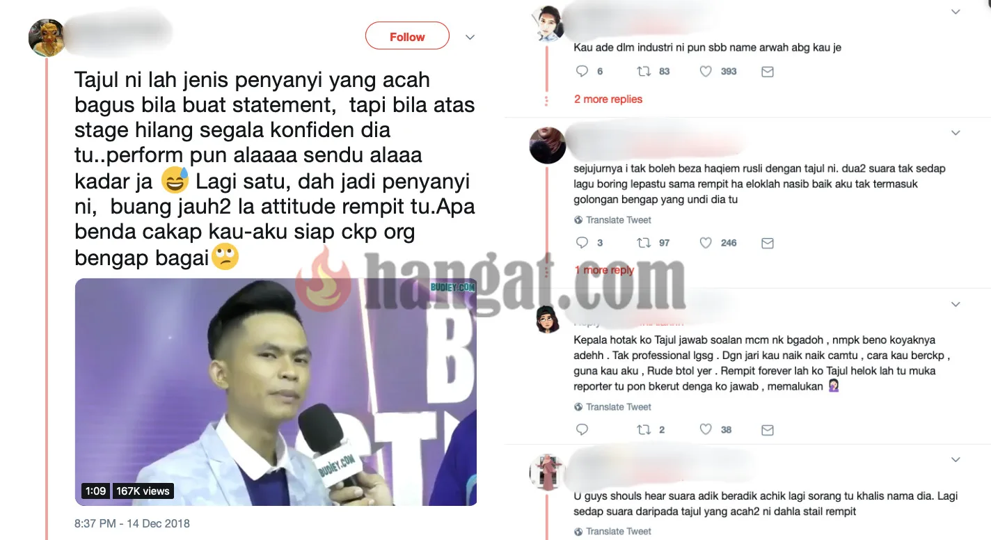 Meskipun begitu bagi sesetengah netizen mereka menganggap Tajul berbakat besar namun sikapnya perlu diubah bagi diterima baik dalam industri. Adakah benar dakwaan tersebut? Barangkali Tajul hanya menjadi dirinya sendiri menyebabkan sesetengah pihak telah tersalah anggap mengenai sikapnya.