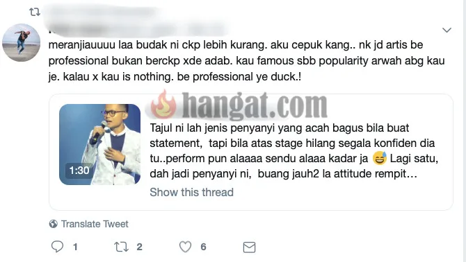 Isu tersebut bermula apabila netizen tersebut memuat naik kembali video wawancara dari blog hiburan beberapa bulan yang lalu sewaktu dia menyertai rancangan realiti Big Stage yang dilihat para netizen seperti tidak sopan.