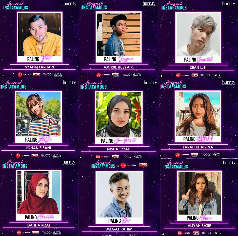 Selain itu, Anugerah Instafamous turut menampilkan sembilan kategori dipertandingkan khusus buat individu bergelar instafamous atau influencers.
