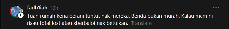 Di ruangan komen, rata-rata netizen menyuarakan pandangan bahawa tuan rumah berhak untuk menuntut ganti rugi.