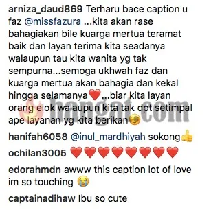 Melihatkan pada ucapan Fazura, rata-rata peminat begitu terharu dan turut memuji sikap Fazura. Bukan sahaja merendahkan diri, malah Fazura juga seperti berjaya mengambil hati ibu mertuanya itu.