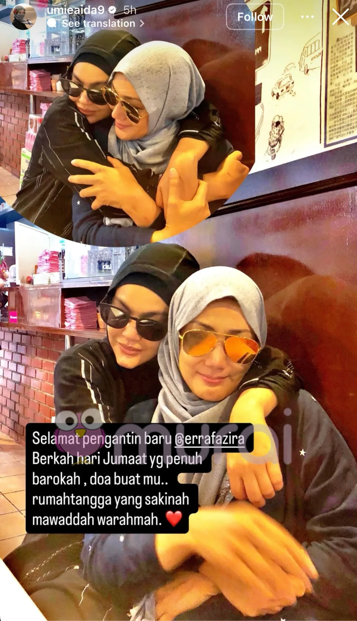 Alhamdulillah, tahniah Erra. Semoga rumah tangga sakinah, mawaddah, warahmah. Aamin.”-tulis Umie buat Erra di Instagram dan TikTok