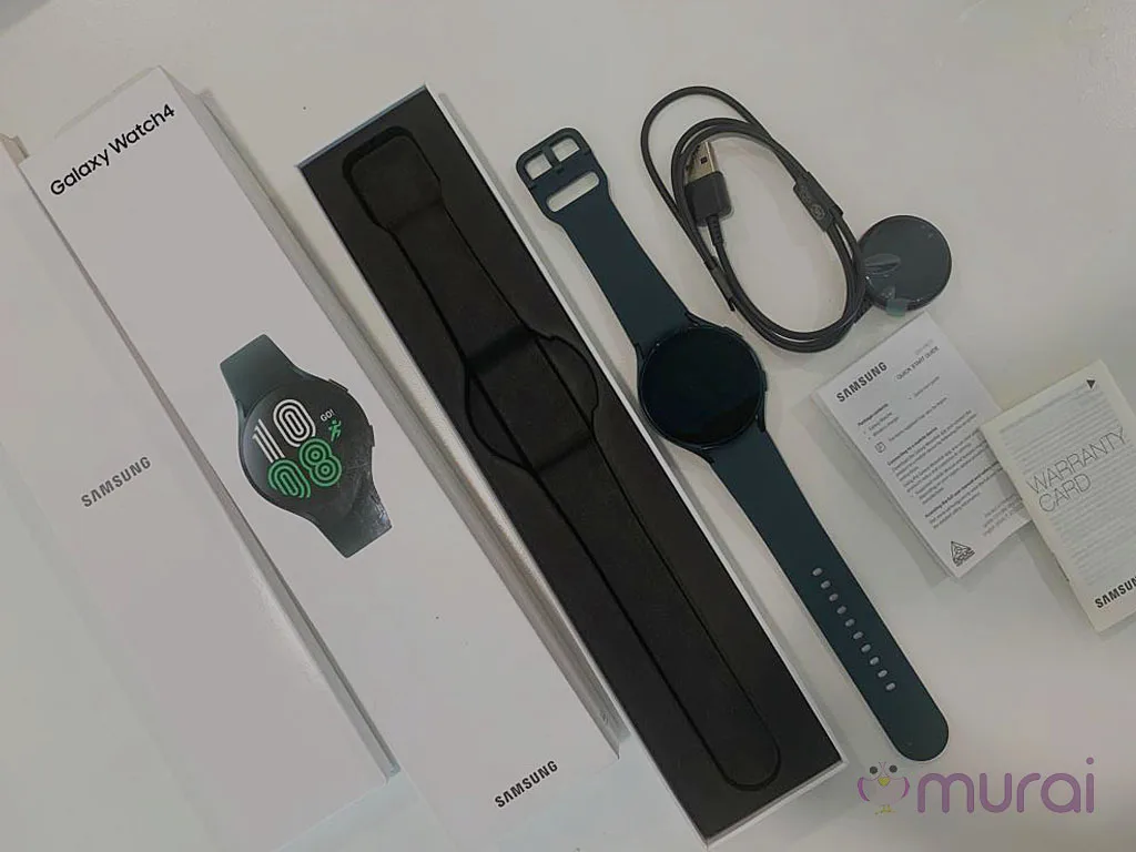 Kotak untuk Galaxy Watch 4 Classic tinggi dan nipis, serupa dengan kotak untuk jam tangan Samsung sebelumnya (dan Apple Watch). Jam tangan diletakkan rata di dalam kotak, dengan bahagian yang lebih kecil di dalamnya mengandungi yang lain. Satu-satunya barang lain yang terdapat di dalam kotak, selain jam tangan, adalah ‘charging cradle‘ iaitu kabel pengecas bersama tapak.