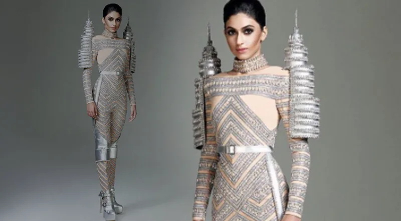 Pemegang gelaran Miss Universe Malaysia 2016 Kiran Jassal akan mempamerkan menara ikonik di pentas dunia melalui jumpsuit yang ditempah khas direka oleh Rizman Ruzaini.