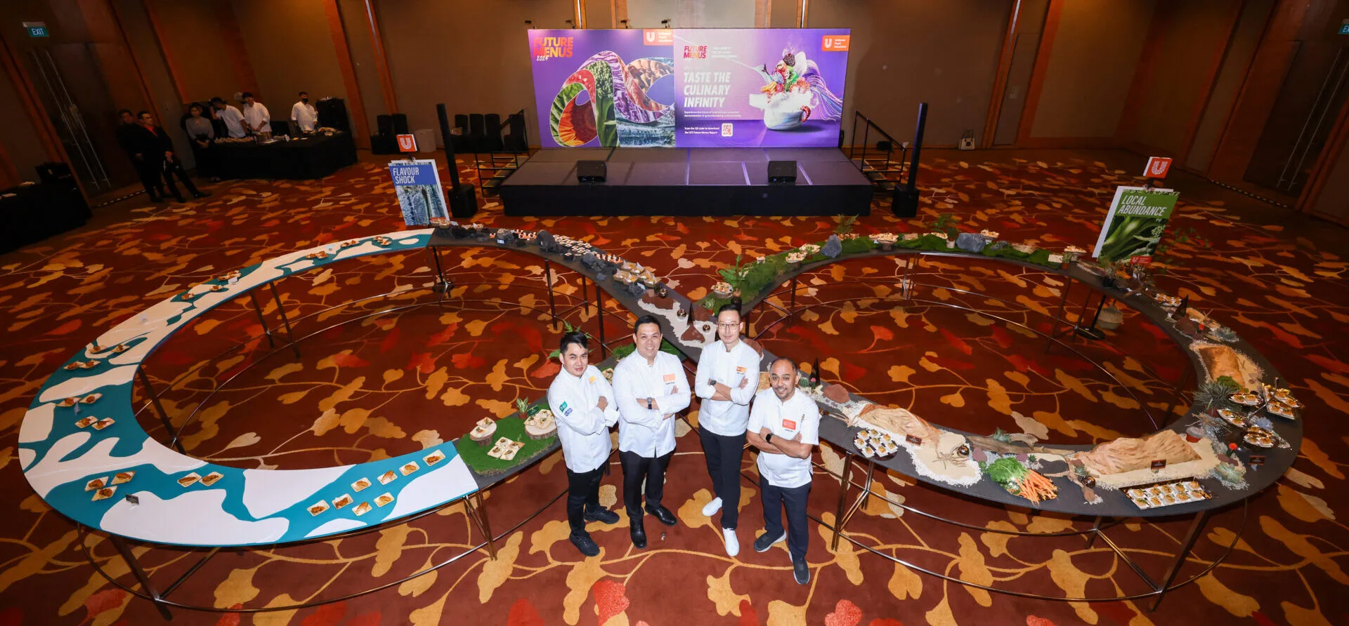 Bertemakan Culinary Infinity, sesi itu dihidangkan pada meja berbentuk infiniti bersegmen yang menggambarkan kemungkinan masa hadapan. Empat kuadan mewakili lapan tren yang dikenal pasti dalam UFS Future Menu Report 2024.