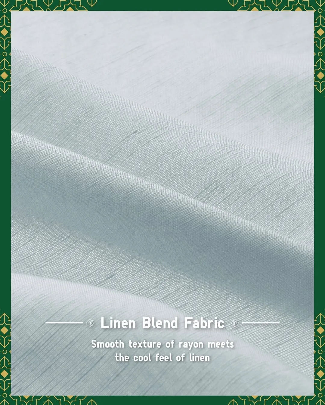 Campuran linen dengan fabrik seperti rayon, menghasilkan rasa yang lebih licin dangan gaya semula jadi yang anggun dan penampilan yang kemas. Ia bergerak dengan mudah mengikut si pemakai, menggabung keselesaan kasual dengan gaya yang elegan.