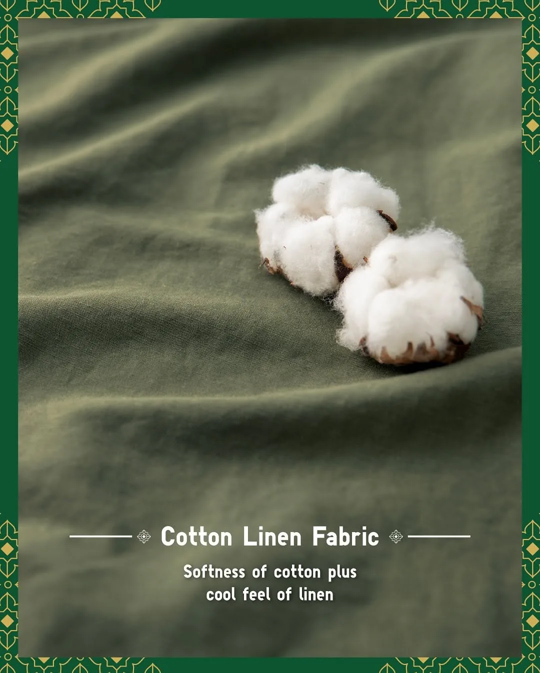 Gabungan kapas lembut dan rasa ringan linen untuk keselesaan dan kesegaran sepanjang hari. Keseimbangan semula jadi antara kelembutan dan serba boleh menjadikannya ideal untuk suasana kasual, mencipta estetik santai dan mudah untuk pemakaian harian yang sempurna.
