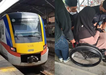 Usaha sepasukan sekumpulan pegawai polis bantuan membawa seorang wanita di atas kerusi roda menuruni tangga di stesen KTM menerima pujian...