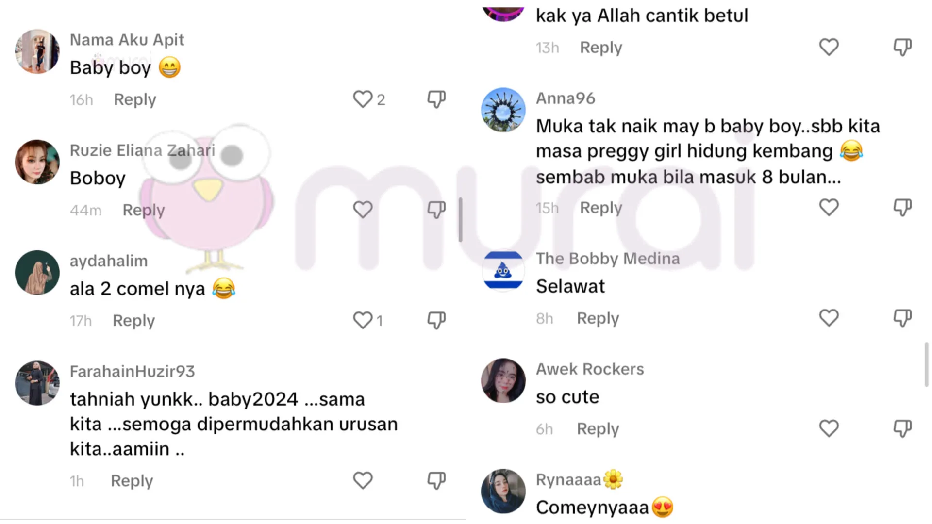 “Tengok dari depan macam boy. Mudah-mudahan dilindungi kedua-dua insan yang menunggu kelahiran yang comel.”