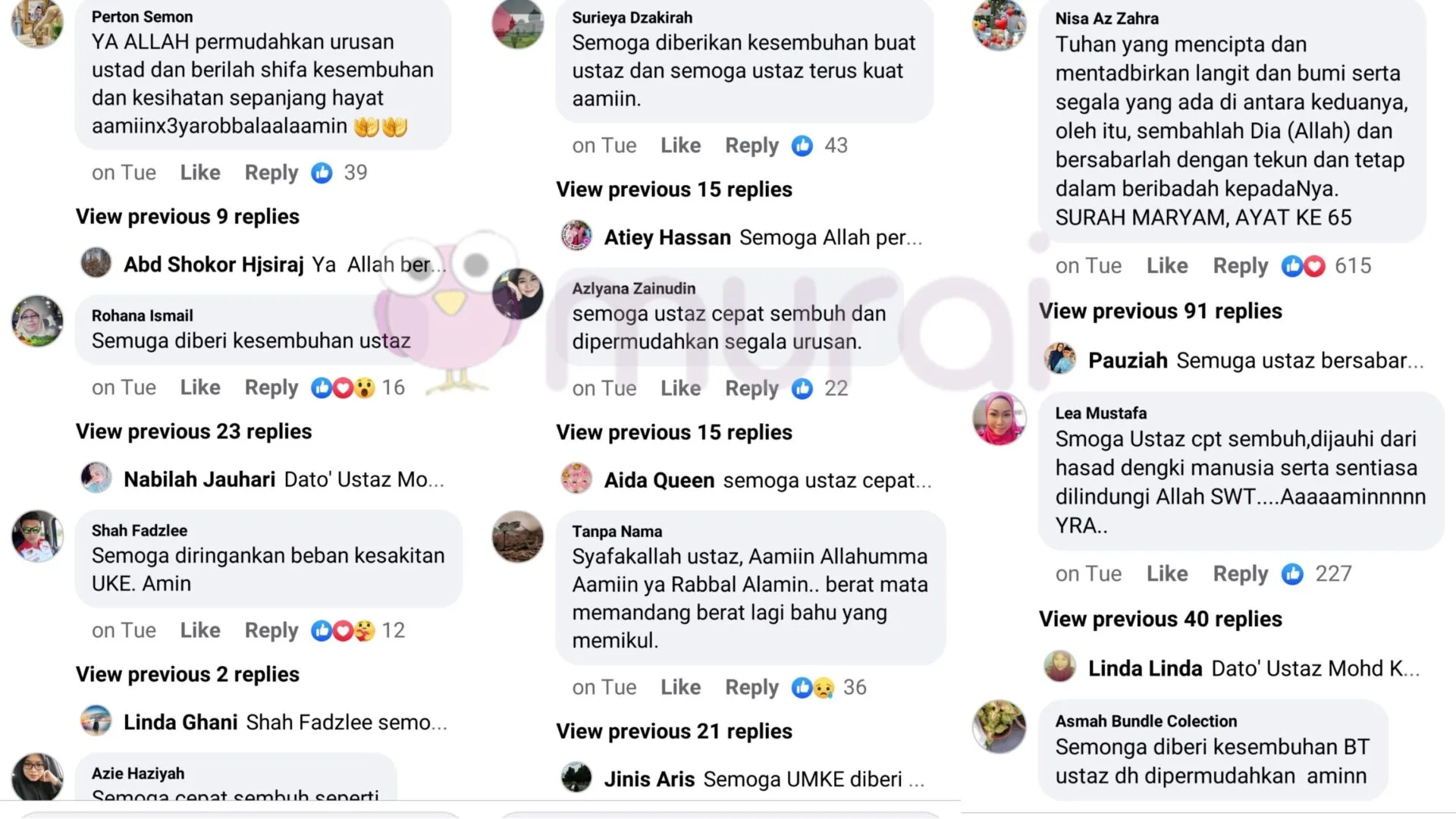Di ruangan komen, rata-rata netizen menitipkan doa agar Ustaz Kazim agar diberikan kesembuhan dengan cepat dan terus kuat hadapi ujian.