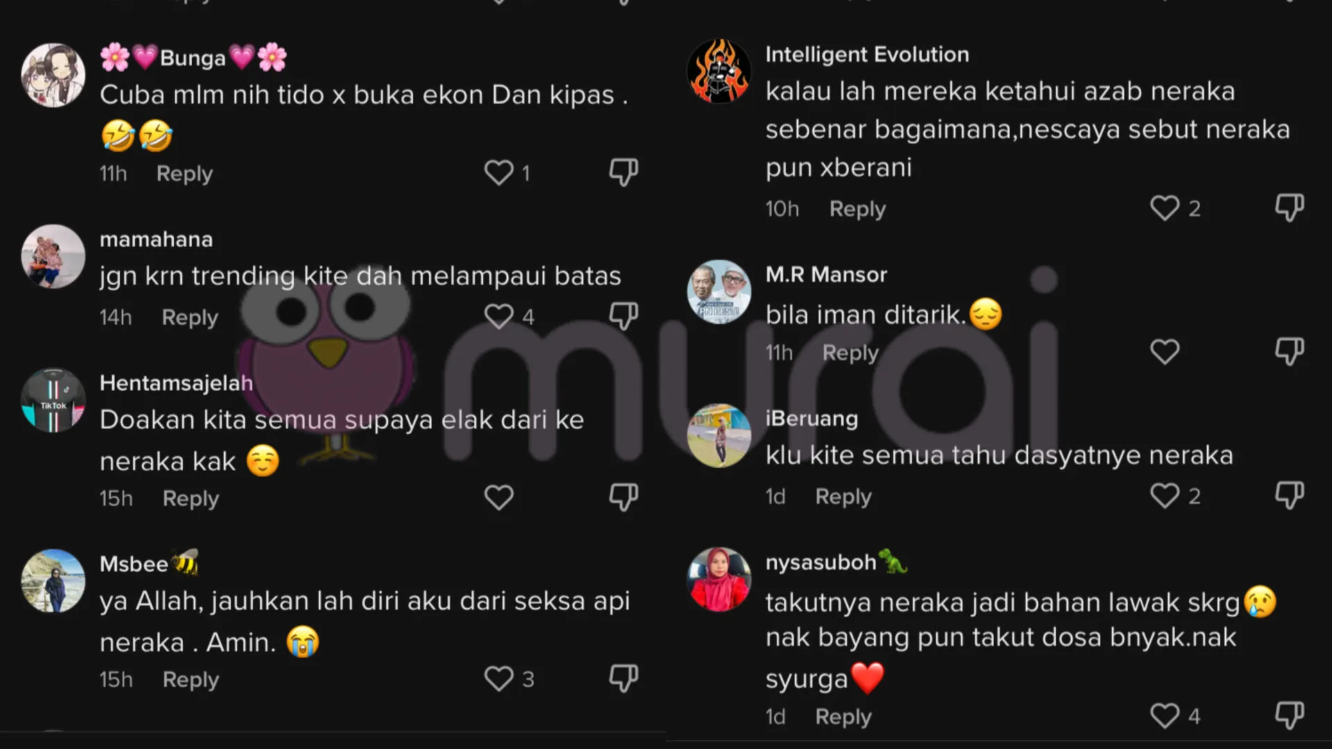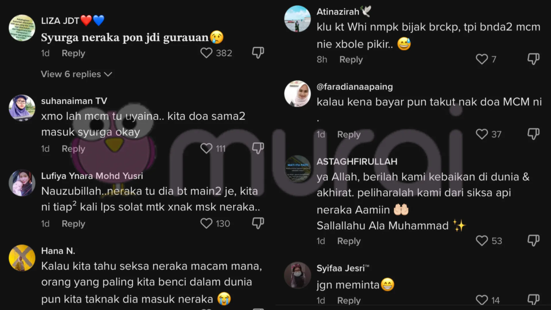 “Takutnya neraka jadi bahan lawak sekarang. Nak bayang pun takut dosa banyak. Nak syurga.”