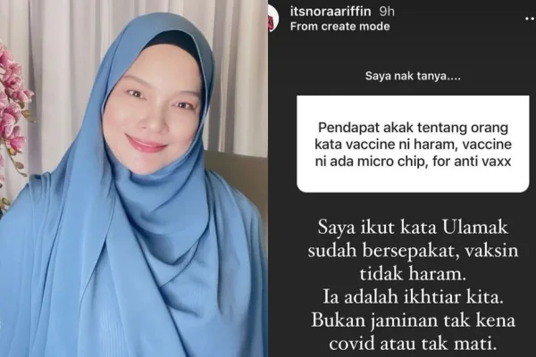 “Kita kena buka pemikiran kita. Macam mana tahu ada microchip? Kalau tak vaksin? Saya lihat ramai kawan-kawan dan saudara yang anti vaksin, akhirnya masuk ICU, mintak divaksin”, kongsi Nora di Instagram.