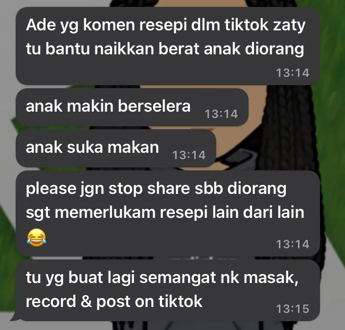Bagi ibu-ibu yang ingin memasak resepi lain dari yang lain, bolehlah mengikuti Zati di tiktoknya. Jangan lupa, pastikan beri yang terbaik buat putera dan puteri kecil anda.