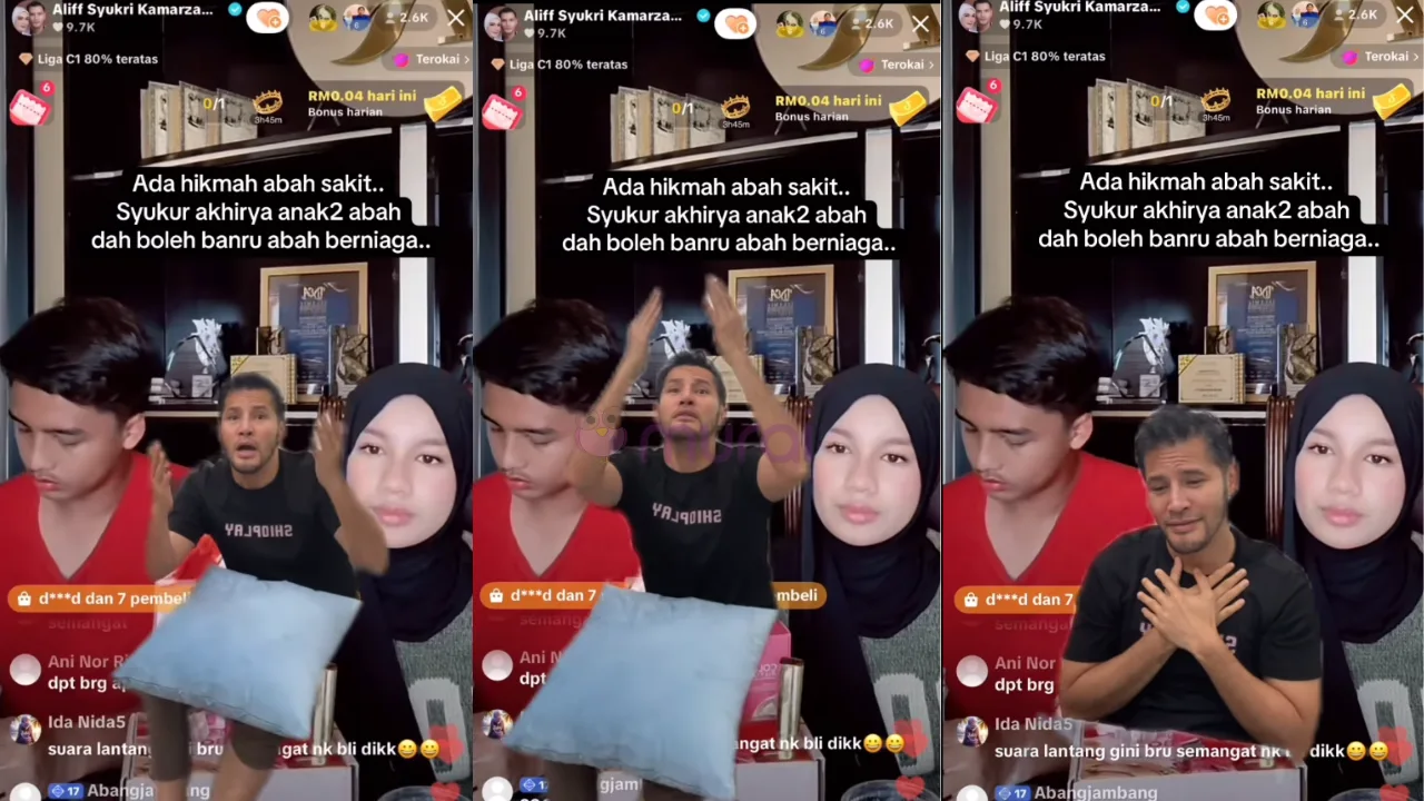 “Sebenarnya saya sakit dan saya di luar negara dan saya tak larat tapi alhamdulillah anak saya yang saya ajar selama ni berniaga akhirnya boleh membantu saya terasa ringan sangat. Terima kasih anak-anak abah Aminn.” Luah Aliff Syukri di kapsyen