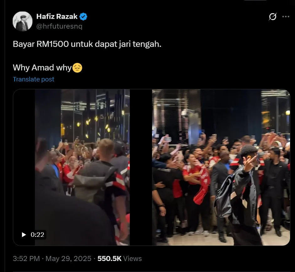Menambahkan lagi kontroversi, rakan sepasukan Amad, Alejandro Garnacho, turut dilihat membuat isyarat yang sama dalam satu gambar bersama peminat, dipercayai sebagai gurauan dalaman antara pemain. Gambar tersebut turut beredar di platform sosial dan mencetuskan perbincangan hangat mengenai tahap disiplin dan kawalan emosi pemain muda Manchester United.