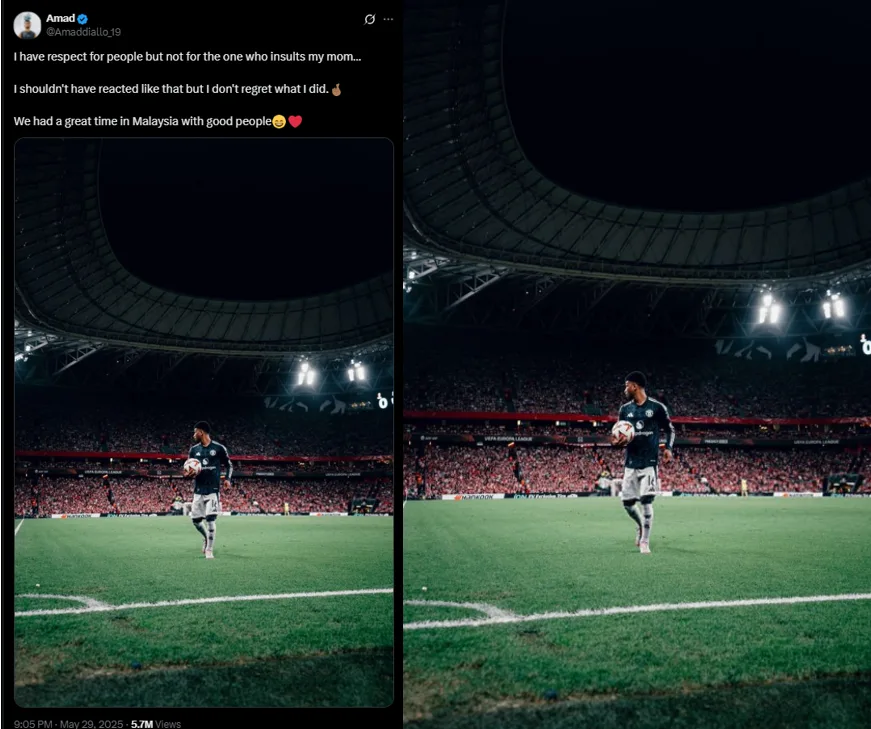 Susulan kecaman dan spekulasi di media, Amad Diallo tampil memberi penjelasan. Menurutnya, tindakan tersebut adalah reaksi spontan terhadap ejekan melampau yang diterimanya daripada segelintir peminat, termasuk kata-kata menghina terhadap ibunya.