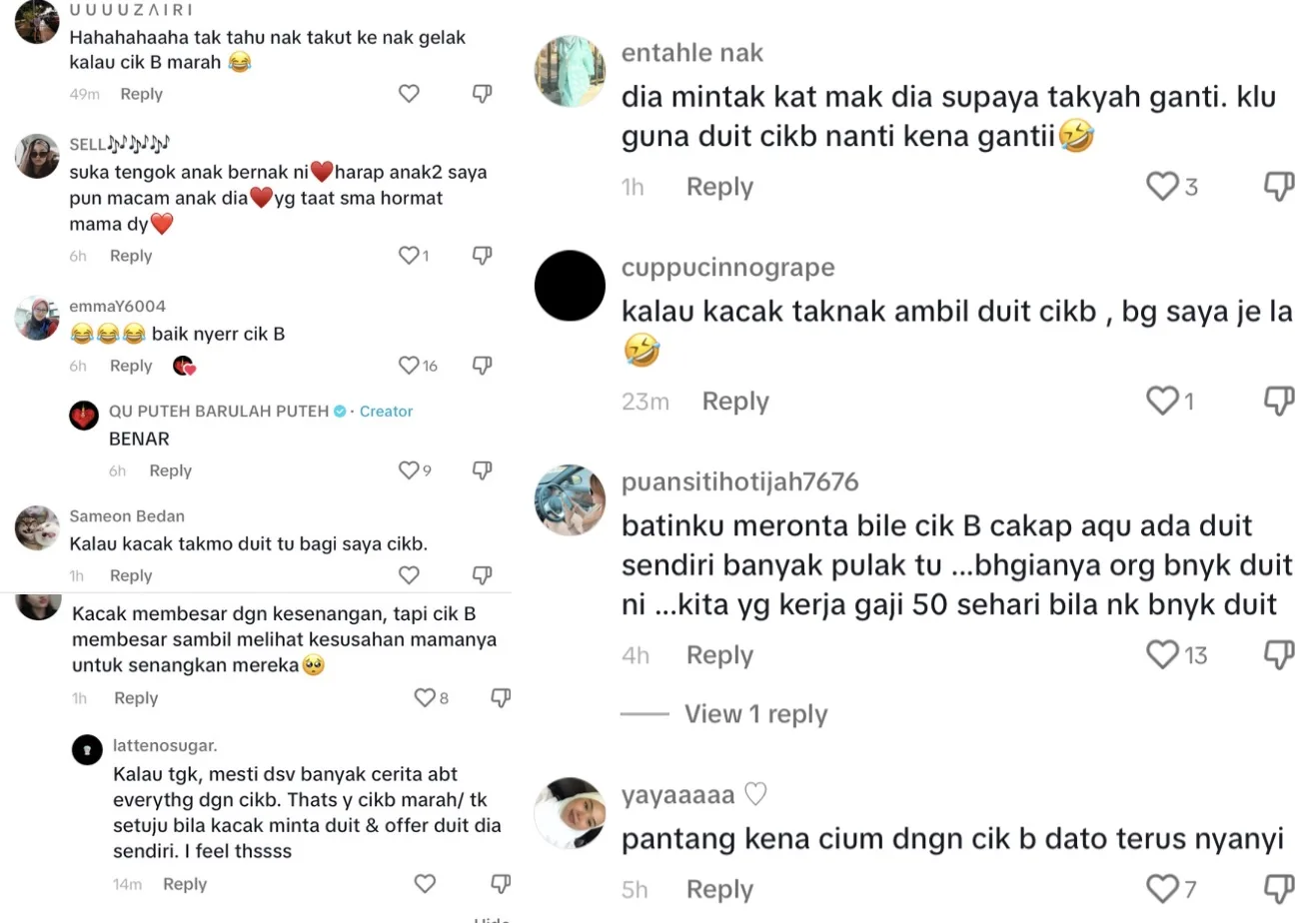 “Kacak membersar dengan kesenangan, tapi Cik B membesar sambil melihat kesusahan mamanya untuk senangkan mereka”-kata mereka