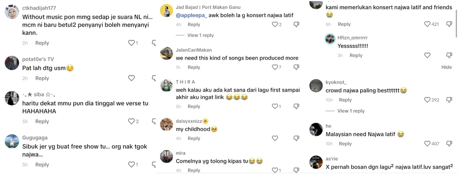 “Tak pernah bosan dengar lagu lagu Najwa Latif, luv sangat sangat”-kata mereka