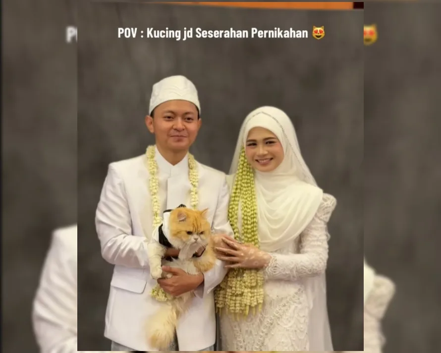 Walau bagaimanapun, pasangan pengantin dari Indonesia ini nampaknya telah ‘mematahkan’ tradisi tersebut dengan menjadikan kucing kesayangan mereka sebagai hantaran perkahwinan.